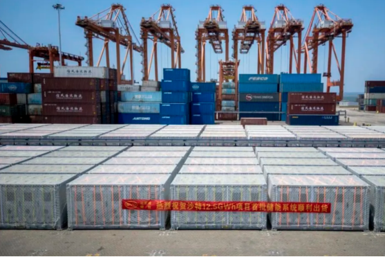 这批装载上船的货物,是比亚迪为沙特电力公司打造的2.5GW/12.5GWh超级储能项目的第一批120台MC Cube-T魔方储能系统柜。